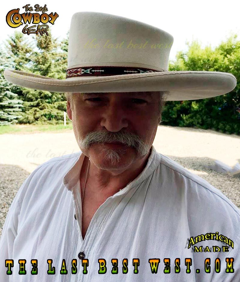 Order your hat in 100X undyed, pure beaver fur-felt, and be one of the first to hearken back to an era in hat making a hundred and forty years ago. The first cowboy hats were made from 100% beaver fur-felt, natural and undyed, and unless the cowboy lost it or had it stolen – the hat lasted a lifetime. For an all weather hat – nothing beats a traditional western hat made from pure beaver fur – it’s what old west cowboys wore.