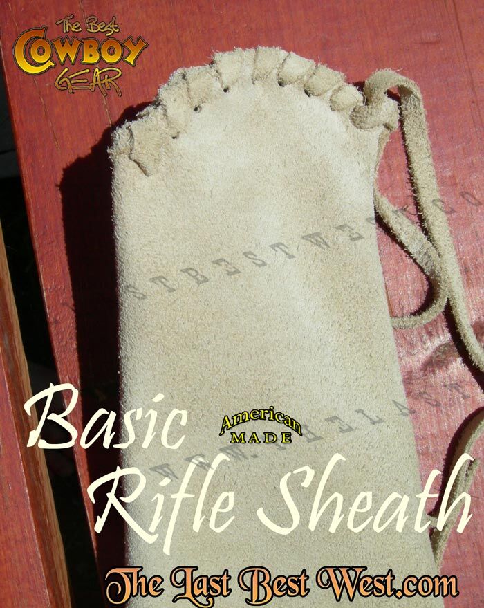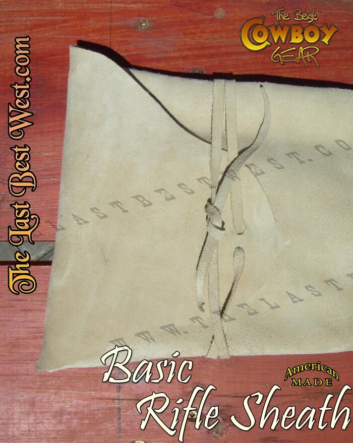 Our basic rifle sheath comes in a natural color. We make this sheath from rough out leather and it is simple and durable. The stitching is reinforced at wear points. We also add a fold over flap with lace, for rain and snow protection.
